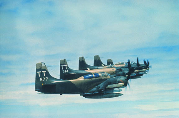 and A-1 H's in staggered flight formation, on a mission over Southeast