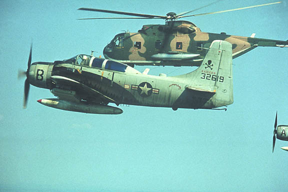 A 602nd ACS A-1E (132-619) sidles up next to an HH-3
