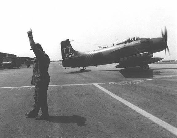 Operations Wing A-1 Skyraider taxiing out for a mission at DaNang Air base,