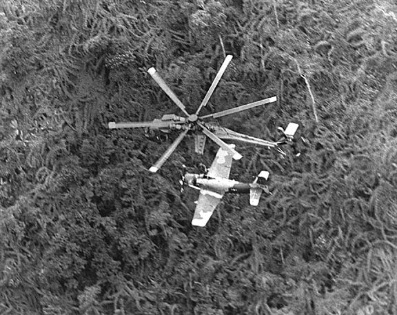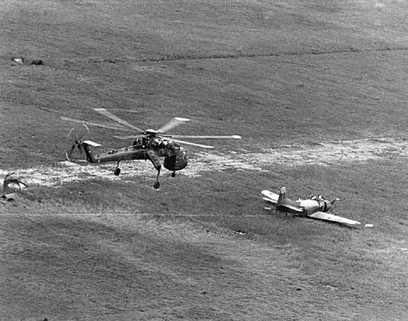 A shot of TS 789 slung from below the CH-54A Skycrane