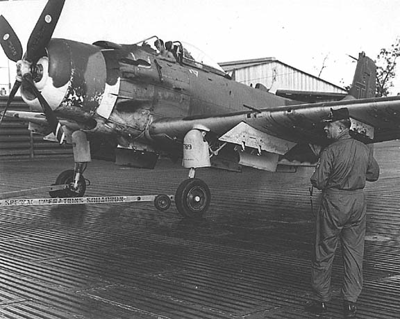 A view from below a loaded Skyraider