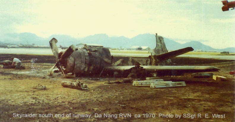 A crashed Skyraider next to the runway at Danang AB